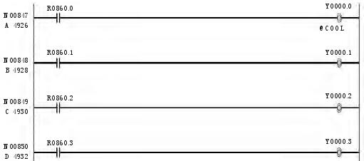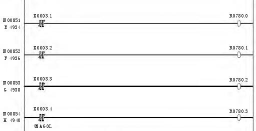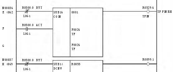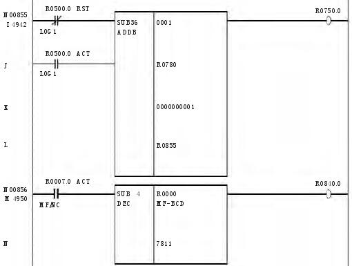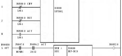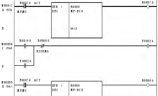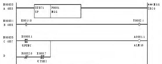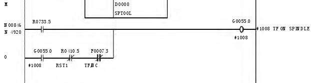 按照换刀要求及换刀过程,针对快速刀库的要求,编写了 PMC 程序,此程序适合于 FUNAC 0i mateMD 系统。进过现场调试,飞碟绝对式快速刀库的 PMC 程序如下: